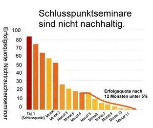 Die Nachhaltigkeit herkömmlicher Nichtraucher-Seminare ist gering. Tatsächlich liegt die Quote der Teilnehmer, die zwölf Monate nach einem solchen Seminar noch rauchfrei sind, oft nur bei etwa 5 %.